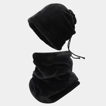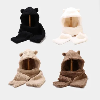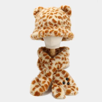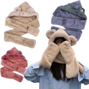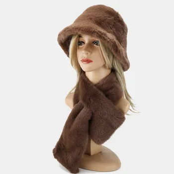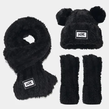2025 Winter Plush Scarf Thick Plush Hat Warm Winter Cap Fur Women Hats Scarfs Gloves Set