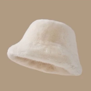 Luxury Simple Fashion Plush Hat Woman Winter Cute Plus Fleece Face Small Bucket Fisherman Hat Woman Head Wrap Warm Hat