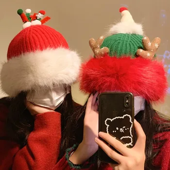 Winter Cartoon Hat With Mask Bear Ears Lamb Beanie Warm Thickened Ear Protection Skull Beanie Women Girls Kawaii